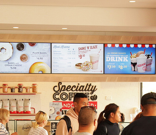 Modernize your restaurant with digital menu boards. We will transform a static food and beverage list and turn it into a dynamic visual experience that will have mouths watering. Digital menu boards can showcase a mix of video footage, animations, and imagery to tantalize your customers and entice foot traffic into your restaurant. By using an effective display strategy, you will have the ability to prompt customers to order items with higher margins and up sell them to buy more items.